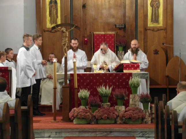 O godzinie 18.00 w kaplicy rektoralnej pw. Niepokalanego Serca Matki Bożej sprawowaliśmy Eucharystię dziękczynną, której przewodniczył br. Tomasz Żak – Minister Prowincjalny. Podczas homilii, br. Tomasz Protasiewicz – Wikariusz Prowincjalny mówił do zebranych w świątyni osób: Dlatego bracia, cieszę się, że mamy to miejsce, że gromadzi nas dziś tutaj, w Zagórzu, okazja poświęcenia drugiego eremu. Oczywiście nie chodzi o budynek, o ściany z drewna, ale o rzeczywistość. Potrzeba tego miejsca – Domu Modlitwy rodziła się i dojrzewała w braciach naszej Prowincji przez wiele lat. Po kilkunastu latach istnienia tego domu, okazało się, że dla wielu braci chęć pielęgnowania ducha modlitwy, ogromne pragnienie by zatrzymać się i zamyślić przed Panem jest tak duże, że nie może temu sprostać ta struktura. Stąd powstał pomysł by zbudować drugi domek – erem przeznaczony dla braci, na ich osobistą modlitwę.