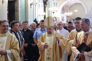 Uroczyste poświęcenie mozaiki odbyło się w bazylice Matki Bożej Anielskiej, w obecności m.in. organizatorów pielgrzymki do Ziemi Świętej: kustosza sanktuarium O. Azariasza Hessa, który wygłosił homilię podczas Mszy św., oraz Br. Mateusza Miklosa. W wydarzeniu uczestniczyli również kalwaryjscy pielgrzymi do Ziemi Świętej.