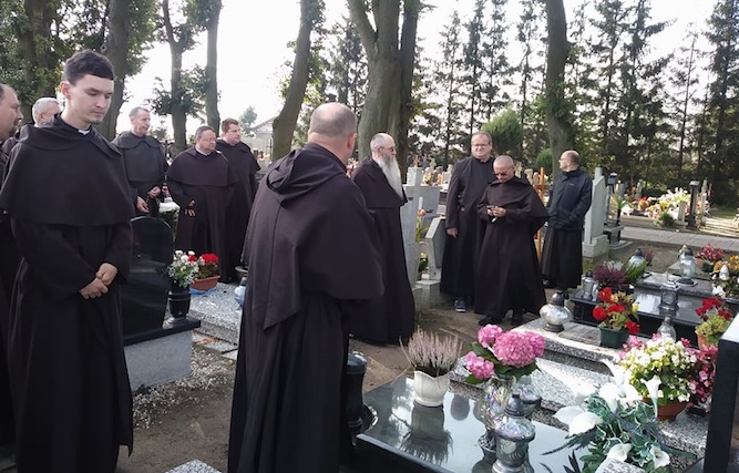 W czasie Mszy świętej karmelici odnowili swoje zakonne śluby. Bracia nawiedzili też cmentarz parafialny, na którym spoczywają doczesne szczątki rodziców o. Hilarego – Marii i Marcina Januszewskich. Modlili się też przed pamiątkową tablicą umieszczoną na dawnym domu rodzinnym o. Hilarego w Gręblinie.