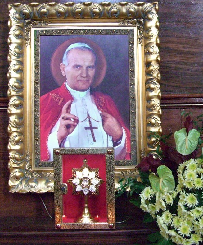 Relikwię umieszczono w dużym, zaszklonym relikwiarium przed obrazem św. Jana Pawła II w piotrkowickim sanktuarium, gdzie będzie odbierać cześć od miejscowych wiernych i pielgrzymów.