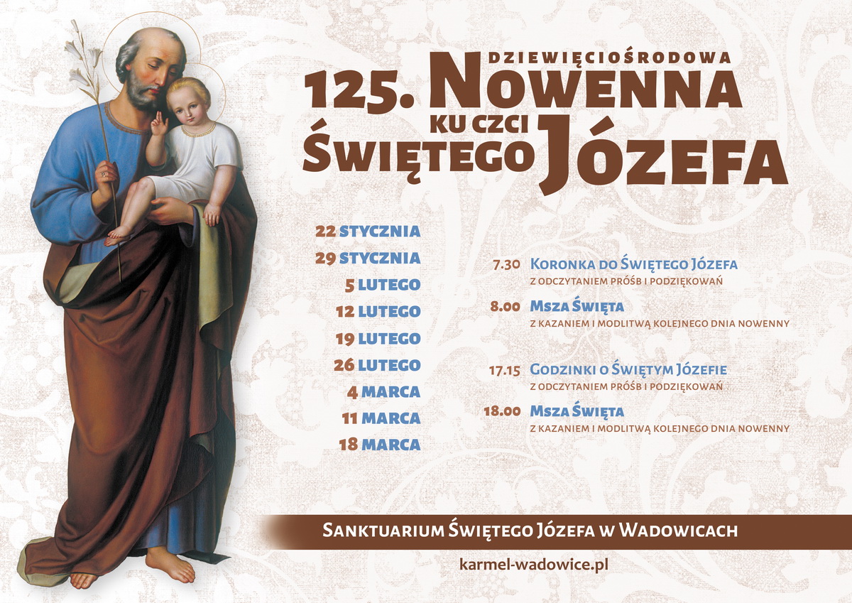 O. Grzegorz Irzyk OCD, przeor wadowickiego klasztoru, przypomniał, że dziewięciośrodowa nowenna przed marcową uroczystością św. Józefa została zapoczątkowana przez św. Rafała Kalinowskiego i w tym roku będzie odprawiana już po raz 125. „Przed wadowickim obrazem świętego Józefa modliło się i wyrażało swoją wdzięczność Bogu wielu wiernych świeckich, sióstr zakonnych, zakonników, kapłanów, biskupów. Przed tym obrazem modlił się młody Karol Wojtyła, wszak na drugie imię miał Józef” – zaznaczył zakonnik i przypomniał, że 19 marca 2004 roku kardynał Franciszek Macharski nałożył pierścień papieski na obraz świętego Józefa i nadał wadowickiemu kościołowi tytuł Sanktuarium świętego Józefa.