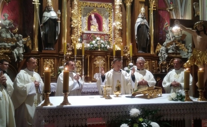Centralnym punktem uroczystości złotego jubileuszu była Msza Święta, której przewodniczył o. Prowincjał Wiesław Strzelecki. W wygłoszonym Słowie Bożym wychodząc od łacińskiego słowa claustrum oznaczającego miejsce zamknięte, ukazał że zakonnicy obejmując Parafię i mieszkając w klasztorach – w miejscach zamkniętych dla ludzi, poprzez swoją działalność duszpasterską wychodzą do świata, aby głosić Jezusa. W swojej homilii również przypomniał postaci proboszczów Parafii: o. Mateusza Wojnarowskiego, o. Michała Wojnarowskiego, o. Adama Ruska, o. Ireneusza Dąbrowskiego, o. Romana Tupaja, o. Andrzeja Malickiego, o. Piotra Słomińskiego i o. Włodzimierza Durbasa. Wspomniał również o zakonnikach pochodzących z tutejszej Parafii: o. Andrzeju Zonce i o. Mieczysławie Jankowskim.
