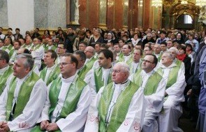 „Przyjechała grupa katechetów mocna, przedstawicielstwo 30 tys. katechetów polskiej katechezy, aby przystawić to katechetyczne ucho do serca Maryi, czyli posłuchać przy Maryi, jak bije serce polskiej katechezy, jak to wszystko wygląda, ale przede wszystkim przyjeżdżamy z dziękczynieniem – podkreślał kard. Kazimierz Nycz