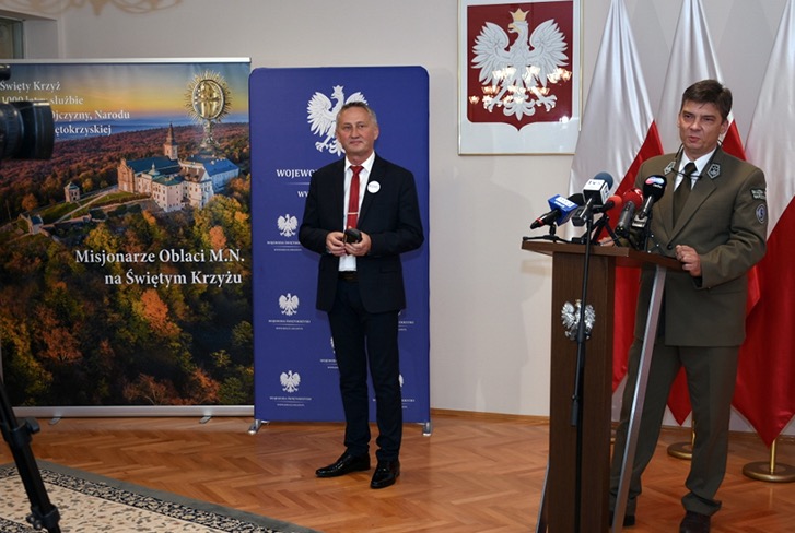 28 września w Urzędzie Wojewódzkim w Kielcach miała miejsca, zorganizowana przez wojewodę Zbigniewa Koniusza, konferencja prasowa dotycząca projektu zmiany granic Świętokrzyskiego Parku Narodowego. Zaproszonymi przez wojewodę gośćmi byli samorządowcy z gmin: Bieliny, Nowa Słupia, Waśniów i Pawłów, świętokrzyscy oblaci z superiorem, o. Marianem Puchałą OMI, oraz dyrektor Świętokrzyskiego Parku Narodowego. W swoim wystąpieniu wojewoda Zbigniew Koniusz oświadczył, że w pełni popiera działania zakonników w sprawie przeznaczenia terenów położonych przy świętokrzyskim klasztorze, zaś samorządowcy należący do Związku Gmin Gór Świętokrzyskich wyrazili „stanowczy sprzeciw wobec rozpowszechnianych w przestrzeni publicznej komunikatów szkalujących działalność zgromadzenia Misjonarzy Oblatów Maryi Niepokalanej na Świętym Krzyżu”.