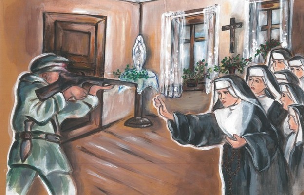 W drugiej połowie 1944 r. nagle wszyscy mężczyźni z okolicy zostali powołani do wojska. Pozostały kobiety, dzieci i starsi. Wobec nadchodzącej zimą Armii Czerwonej nie wszyscy byli zdolni do ucieczki. Siostry katarzynki zdecydowały się z nimi zostać.