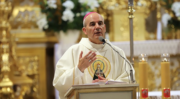 Eucharystia, tajemnica wielka naszej wiary (…) Cenimy niewątpliwie i z wiarą głęboką przeżywamy Eucharystię. Każda niedziela, myślę, w naszym życiu, w naszej pobożności, naszej wierze bez Eucharystii będzie jakąś pomyłką. Tak jak tego uczyliśmy się w naszych rodzinach, w naszych domach, w naszych parafiach, środowiskach – wielu z nas pochodzi z tychże terenów. (…) Pamiętamy, jak żeśmy szli czy z rodzicami czy potem sami do kościoła, że niedziela to Msza święta, to Eucharystia. Potrzeba takich spotkań jak to nasze dzisiaj, naszego pielgrzymowania, aby wybierać to, co służy prawdziwemu naszemu dobru. Nie iść za tymi przyziemnymi, doczesnymi namiastkami dobra, szczęścia, może takiego poczucia spełniania się na dzisiaj i teraz, bo przyjemnie, bo coś posiadam, bo nie jestem głodny, ale słyszymy: “Ja jestem chlebem życia. Kto do Mnie przychodzi, nie będzie łaknął. Kto we Mnie wierzy, nigdy pragnąć nie będzie”. To jest nasz chrześcijański wybór. To jest nasze chrześcijańskie, każdego z nas, przeznaczenie. Odnaleźć się w pełni w Bogu, w Jezusie Chrystusie, bo On jest tym, który nas prowadzi do swego Ojca – przekonywał hierarcha – A widząc naszą słabość, to że i ta doczesność nas w jakiś sposób przyciąga, przychodzimy do takich miejsc jak to. Przerwaliście swoje urlopy, może i wiele kilometrów przebyliście, ale jednak to wszystko ma sens. To jest wyrazem i naszej wiary, ale też i świadectwem tego, że to nie my zapewniamy sobie dobro i nawet to doczesne, ale to Bóg nam to daje. U Boga chcemy wyprosić to, co jest najbardziej nam potrzebne. Życie w zgodzie z samym sobą, życie w zgodzie z innymi, w jedności. Maryja, gdy przychodzimy do Niej, uczy nas najpierw, byśmy byli posłuszni Bogu, byśmy w tym, co przeżywamy, co spotykamy na drodze naszego życia, osoby, które spotykamy, zadania, które stają przed nami, obowiązki, które podejmujemy, chcemy przyjmować na wzór Maryi, mówiąc: Niech się stanie Twoja wola. (…) Wpatrujemy się w Maryję. Maryja jest Tą, która też była pełną wiary, zaufania Bogu. Ta wiara płynęła z Jej bliskości z Bogiem, a bliskość z Bogiem przychodzi poprzez modlitwę, poprzez wsłuchanie się w Słowo Boże, bliskość z Bogiem – jak dzisiejsze czytania, Ewangelia nam podpowiada – poprzez przede wszystkim Eucharystię.