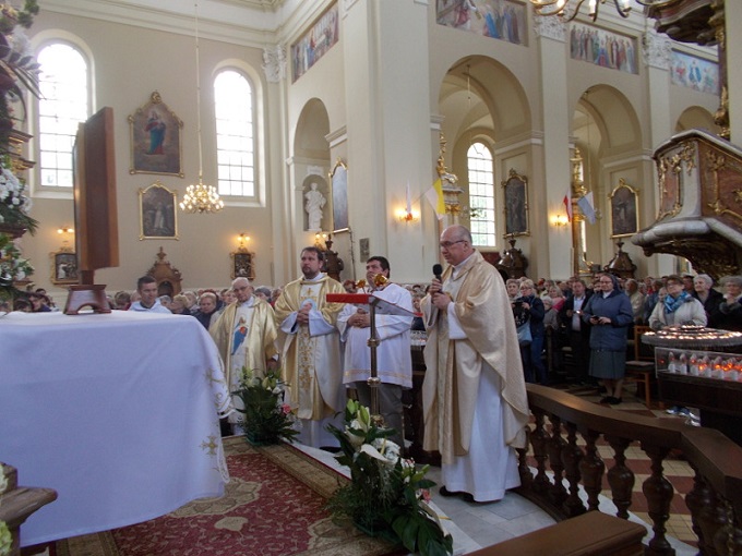 Eucharystii o godzinie 12.30 przewodniczył i Słowo Boże wygłosił Ksiądz Inspektor Andrzej Wujek, przełożony Inspektorii warszawskiej. W koncelebrze było ponad trzydziestu kapłanów, miedzy nimi Ksiądz Inspektor Jarosław Pizoń, przełożony Inspektorii wrocławskiej. Oprawę muzyczną liturgii stanowił chór i orkiestra z Różanostockiej Bazyliki. Na zakończenie Mszy Świętej Ksiądz Inspektor poświęcił złotą różę, jako wotum dziękczynne Matce Bożej Różanostockiej w setną rocznicę powstania Inspektorii św. Stanisława Kostki w Warszawie. Dokonał również aktu zawierzenia Matce Bożej wszystkich współbraci i całej warszawskiej inspektorii.