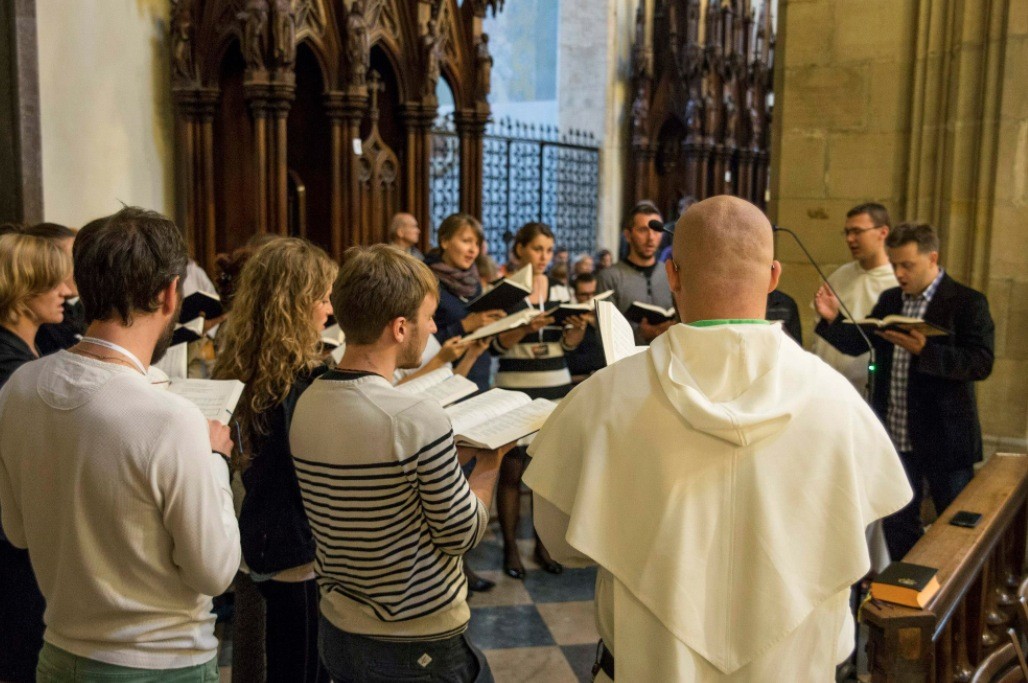 W planie warsztatów nie mogło zabraknąć liturgii – uczestnicy biorą udział w codziennej, uroczystej Mszy konwentualnej w bazylice oo. Dominikanów o godz. 12:00 oraz sprawują jutrznię i nieszpory w klasztornym kapitularzu.