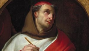Święty Bonawentura OFM urodził się w 1217 r. w Bagnoregio w okolicach Viterbo, zmarł 15 lipca 1274 w Lyonie. Teolog, filozof, doktor Kościoła, biskup, kardynał, siódmy generał franciszkanów. Obok św. Tomasza z Akwinu uważany jest za jedną z największych postaci XIII wieku, jest klasykiem okresu scholastyki. Według legendy, jako maleńkie dziecko został cudownie uzdrowiony przez wstawiennictwo św. Franciszka.