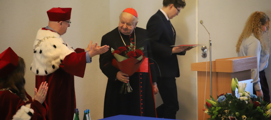 Podkreślił, że uczelnia katolicka, jaką jest Ignatianum, pełni posługę myślenia – ważną w przepowiadaniu Ewangelii do wszystkich – także poszukujących, wątpiących, obojętnych, zniechęconych, niewierzących. – Uczelnia kształci umysły, charaktery i serca nowego pokolenia Polek i Polaków, od których będzie zależała temperatura wiary w naszym kraju. Stanowi też istotny wkład w kulturę i poziom życia społecznego Polski – mówił metropolita senior, który zawierzał teraźniejszość, przyszłość uczelni i jej rozwój Matce Bożej, prosił też o orędownictwo św. Ignacego i wszystkich świętych jezuickich a wśród nich bł. Eduarda Profittlicha SJ, który sto lat temu studiował w murach jezuickiego kolegium w Krakowie – dzisiejszego Ignatianum. Przyzywał też wstawiennictwa św. Jana Pawła II, którego nazwał „przyjacielem jezuitów”.