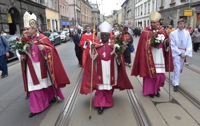 Uroczystą Mszę w bazylice ojców paulinów na Skałce poprzedziła tradycyjna procesja z Wawelu, której towarzyszyło bicie dzwonu Zygmunta.