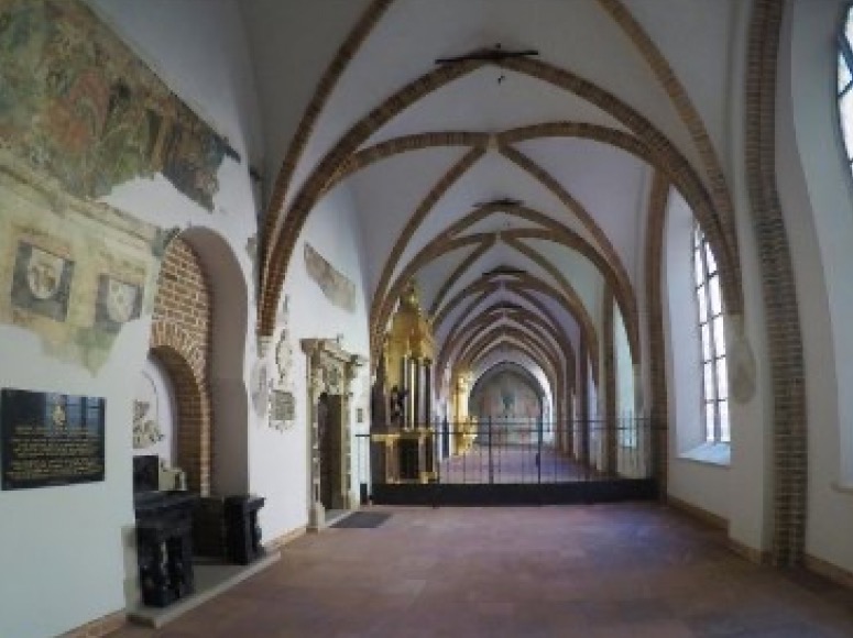 Wykonano nowe zewnętrzne szklenie osłonowe witraży i ich pełną konserwację. Celem prac konserwatorskich we wnętrzu krużganków było przywrócenie pierwotnej estetyki wystroju z uwzględnieniem wpływu „patyny czasu”. Wykonane prace zostały przeprowadzone z pełnym poszanowaniem oryginalnych dekoracji. Podstawowym, a zarazem nadrzędnym celem konserwacji, była interwencja powstrzymująca destrukcyjne czynniki wpływające na obiekt. Renowacja detali kamiennych, portali epitafiów, tablic pamiątkowych pozwoliła na uchronienie dalszej ich destrukcji.