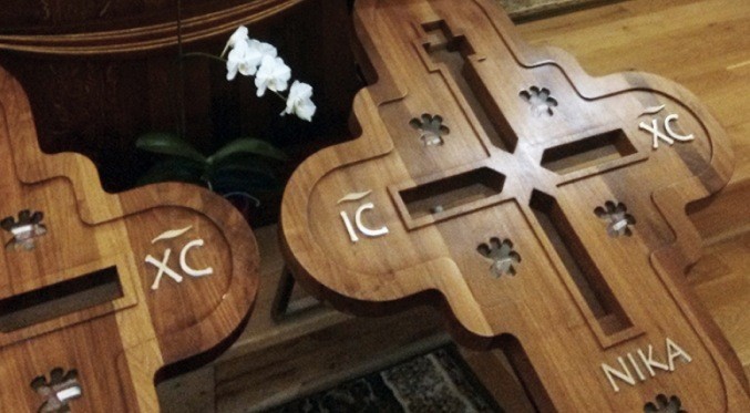 Metrowej wysokości krzyż wykonano z drewna orzechowego na wzór tego, jaki w latach 60. ubiegłego stulecia odnaleziono w czasie wykopalisk archeologicznych na historycznym Ostrowie Lednickim – jednym z głównych ośrodków państwa polskiego za czasów pierwszych Piastów.