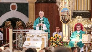 W homilii ks. Janusz Kumala MIC dziękował za ogromny trud, jaki każdego dnia wkładają rolnicy w swoje codziennie obowiązki. – „To polskiej wsi zawdzięczamy w dużej mierze i miłość, i wierność ojczyźnie, i tęsknotę za odzyskaniem niepodległości w okresie rozbiorowym, czego wyrazem było pielgrzymowanie do maryjnych sanktuariów, także licheńskiego. Dzisiejsze święto, zakorzenione w tradycji polskiej, chce zwrócić nasza uwagę na tych, którzy trudzą się, abyśmy mieli chleb codzienny. Ważne jest, abyśmy pielęgnowali troskę o polskie rolnictwo, o to, aby nigdy nie zabrakło tych, którzy z miłością wychodzą codziennie w pole.”