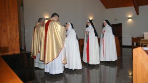 Tegoroczne świętowanie w kościele pw. Matki Bożej Dziesięciu Cnot Ewangelicznych w Grąblinie miało szczególny wymiar ze względu na trwający w Kościele katolickim Rok Życia Konsekrowanego. Z tej racji wraz z sześcioma siostrami anuncjatkami, które przebywają w grąblińskim klasztorze na stałe, modliła się także Matka Służebnica, czyli przełożona całego Zgromadzenia Sióstr Najświętszej Maryi Panny. S. Maria od Chrystusa na  uroczystości do Grąblina przybyła z Francji, z głównego klasztoru mniszek, który znajduje się w podparyskiej miejskości Thais. W słowie kończącym Mszę św. dziękowała księżom marianom za troskę i opiekę, jaką sprawują nad zakonnicami. Parafianom z kolei wyraziła wdzięczność za przybycie i wspólną modlitwę, a także ze życzliwe przyjecie sióstr w licheńskim Sanktuarium. Wczorajsze uroczystości odpustowe uświetnił chór parafialny Virtus Dei.