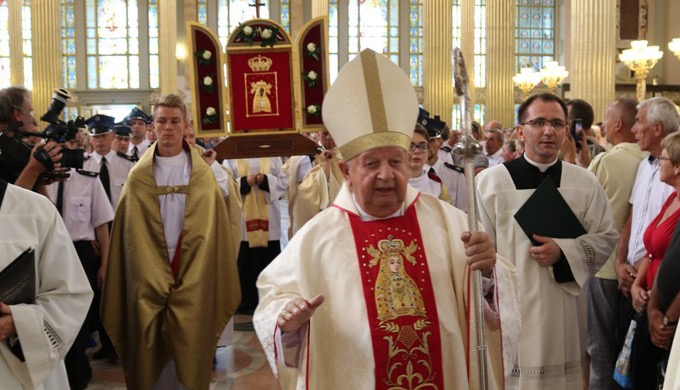 W odniesieniu do licheńskiego wizerunku Matki Bożej kard. Dziwisz zwrócił uwagę na dwa szczegóły: symbole męki Chrystusa znajdujące się na obrzeżach Jej szaty oraz białego orła w koronie znajdującego się na piersi Maryi.