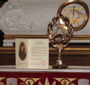 Prośbę o relikwie apostołki Bożego miłosierdzia skierował w imieniu parafian do Zgromadzenia Sióstr Matki Bożej Miłosierdzia proboszcz ks. Andrzej Gruszka SCJ. Uroczyste ich przekazanie odbyło się w łagiewnickim kościele podczas Mszy św., w której uczestniczyła 50 osobowa delegacja parafii. W czasie homilii, ks Gruszka przypomniał postać żyjącej w tym miejscu siostry Faustyny oraz wielkiego czciciela Bożego miłosierdzia papieża Jana Pawła II. Podkreślił również potrzebę bycia apostołami miłosierdzia poprzez modlitwę, słowo i czyny. Podziękował siostrom ze Zgromadzenia Matki Bożej Miłosierdzia za dar relikwii ich świętej Patronki.