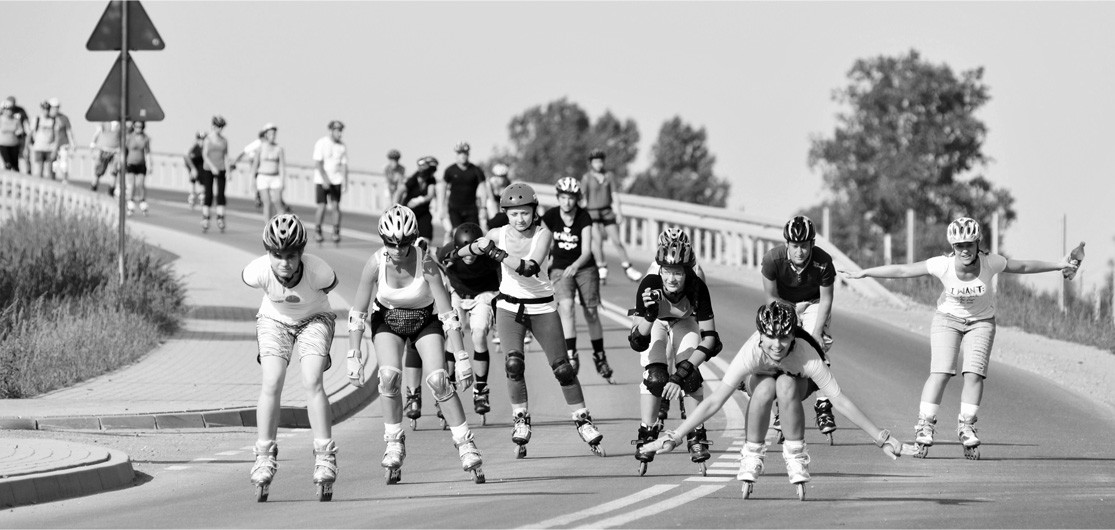 W Częstochowie korki. Jakaś kobieta w Passacie coś pokazuje. Jeden z porządkowych mówi „puszcza nas”. Wjeżdżamy przed samochód i cichcem wbijamy się dalej. Kiedy wjeżdżamy na ulicę prowadzącą w kierunku Alei NMP policjant kierujący ruchem niemieje. Z ust wypada mu gwizdek. Na moment z wrażenia przestaje kierować ruchem W jego kierunku nadjeżdża ponad setka rolkarzy w niebieskich koszulkach. My niestrudzenie jedziemy dalej.