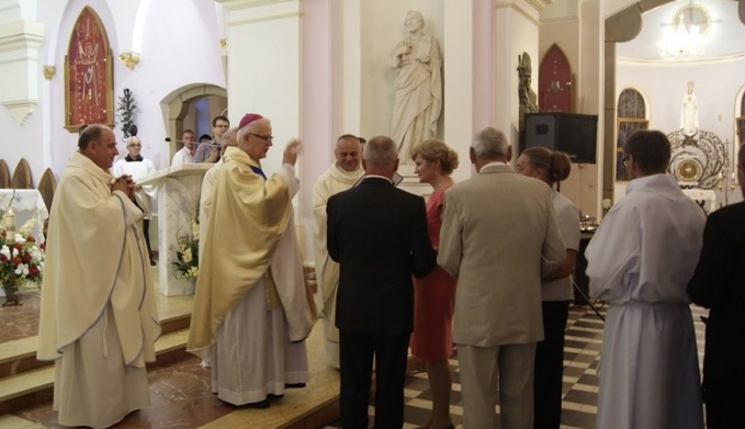 19 sierpnia, a więc w setną rocznicę sierpniowego objawienia w Fatimie, odbyło się przy Sanktuarium św. Michała Archanioła i błogosławionego ks. Br. Markiewicza w Miejscu Piastowym VIII Wesele bez toastu. Fakt koronacji cudownej Figury Matki Bożej Fatimskiej, który miał miejsce 11 czerwca, wyraźnie zasugerował, aby na samym początku tego spotkania rodzinnego zawierzyć Matce Bożej wszystkie rodziny. W upalny, sobotni dzień o godz. 9.20, po modlitwie zawierzenia Matce Bożej, Starostowie Wesela: Grażyna i Adam Dutkowie przywitali uczestników i podali bardzo bogaty program. Po śpiewie hymnu Wesela, dzieci udały się do klasztoru Sióstr Michalitek na swoje zabawy, młodzież z Siostrą Kariną Pawłowską i grupą lednicką udała się do auli szkolnej zaś starsi pozostali w kościele, aby wysłuchać prelekcji Lucyny Montusiewicz na temat świętowania w rodzinie. Po wspólnym odmówieniu Anioł Pański młodzież zajęła miejsce dorosłych, zaś starsi udali się do szkoły, aby podobnie jak uprzednio młodzież, wniknąć w przesłanie tańców lednickich i nieco poćwiczyć z grupą taneczną. Niezwykły darem dla uczestników były świadectwa dwóch małżeństw: Małgorzaty i Zenona Lenartów oraz Karoliny i Piotra Pernal. Po obiedzie uczestnicy mieli okazję do spowiedzi przy wystawionym w monstrancji Najświętszym Sakramencie oraz dzielili się osobistym doświadczeniem świętowania rodzinnego w spotkaniach grupowych. O godz. 17.00 uroczysta Msza święta pod przewodnictwem Ks. Arcybiskupa Józefa Michalika, podczas której ponad siedemdziesiąt par małżeńskich odnawiało swoje sakramentalne przyrzeczenia oraz kilka osób złożyło deklaracje KWC. O piękną oprawę muzyczną Mszy świętej i oczywiście całego Wesela zadbał zespół Gloria. Przed Mszą świętą Starostowie Wesela odczytali pozdrowienia od ks. Biskupa Tadeusza Bronakowskiego, który między innymi napisał: „Dzisiaj pokazujecie na tym pięknym spotkaniu rodzin w Miejscu Piastowym, że alkohol nie jest potrzebny, aby cieszyć się z życia, aby radować się spotkaniem z bliskimi, aby przeżywać najpiękniejsze chwile. Pokazujecie, że prawdziwa, wielka radość płynie z serca, a nie z butelki czy kieliszka. Za te radosne włączenie się w troskę o trzeźwość bardzo wam dziękuję. Nie wygramy walki o trzeźwą Polskę bez uśmiechu, bez radości, bez biesiady. Polska potrzebuje właśnie takiej nowej kultury trzeźwości, potrzebuje świadectwa, że alkohol nie jest niezbędny, aby być szczęśliwym – a wręcz przeciwnie – alkohol niszczy szczęście człowieka, rodziny i spokój społeczeństwa. Kochani! Gorąco dziękuję wszystkim organizatorom tego pięknego święta. Najgoręcej dziękuję rodzinom, które dzisiaj dzielą się swoim świadectwem walki o trzeźwość w ojczyźnie”.