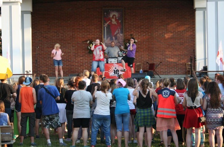 Sobota rano śniadanie, a po nim czas poznania. W ołtarzu polowym, który pełnił funkcję sceny, pojawili się ludzie z mikrofonami i instrumentami. Jedni zagrzewali do uczestnictwa, zawiązania wspólnoty. To świeżo wyświęcony ksiądz Jacek Majbrodzki i Mirella Kleczyńska – absolwentka MZSP w Miejscu Piastowym, inni muzyką poruszali zebraną młodzież. Świetni „Filipscy i Przyjaciele” z Częstochowy pokazali co znaczy oddać serce muzyce i Jezusowi.