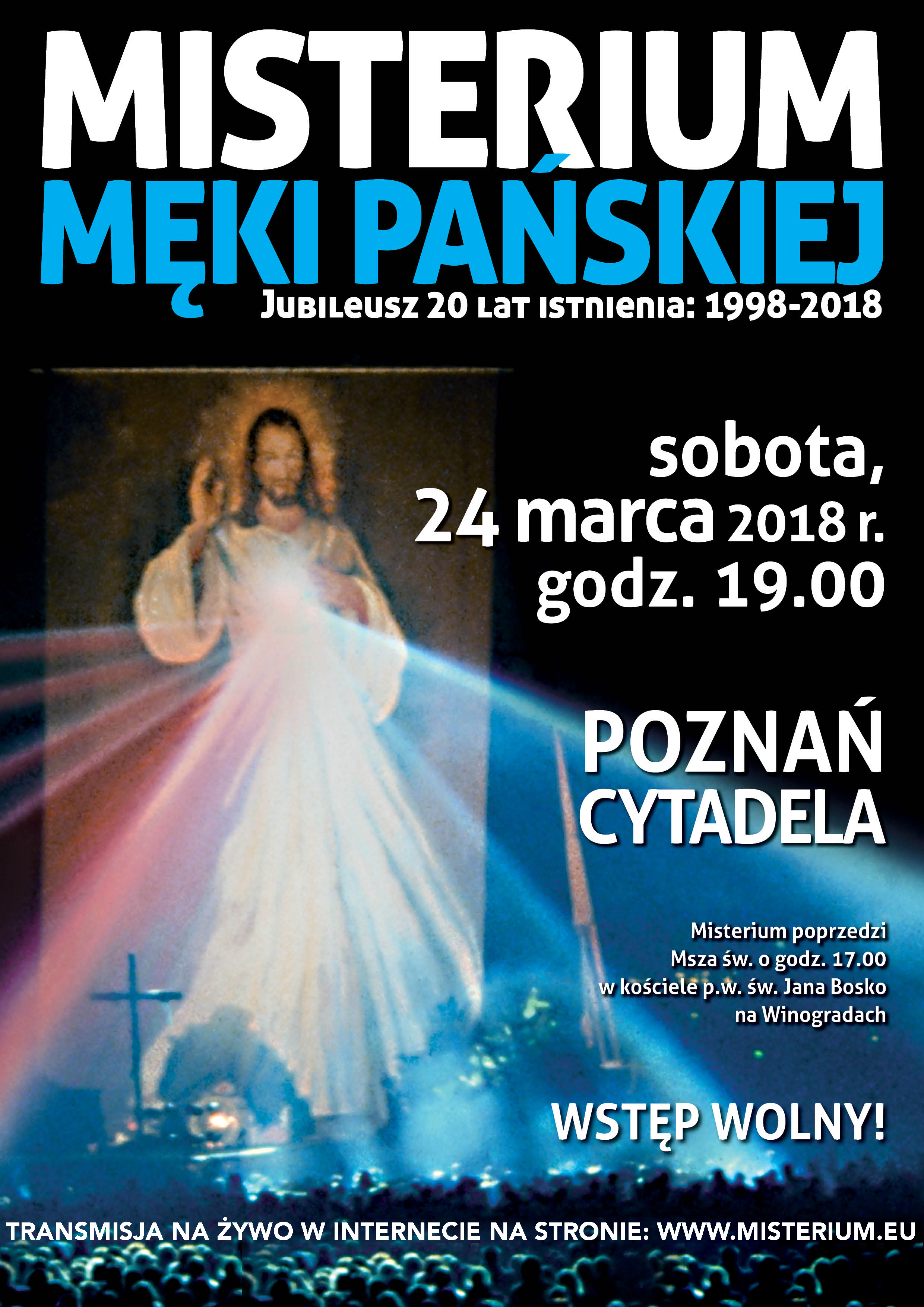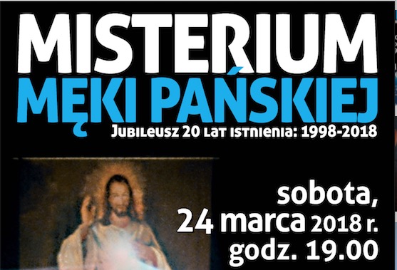 W tym roku przypada 20 lat istnienia Misterium; 1998 – 2018. W związku z tym serdecznie zapraszamy do wspólnego przeżywania Misterium Męki Pańskiej na Poznańskiej Cytadeli w tym jubileuszowym dla nas roku.