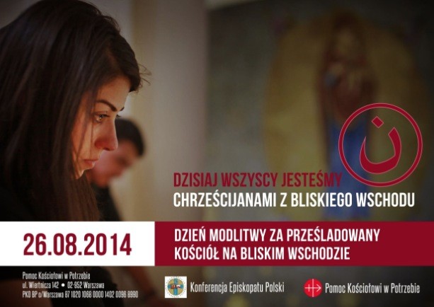 Odpowiadając, w imieniu całego Kościoła w Polsce, na apel Ojca Świętego Franciszka oraz katolickiego Patriarchy Babilonii obrządku chaldejskiego, Louisa Raphaela I Sako, który błaga Polaków o gest solidarności, prosimy Was, aby dzień 26 sierpnia br., który jest obchodzony w Polsce jako uroczystość Matki Boskiej Częstochowskiej, był Dniem modlitwy za Prześladowany Kościół na Bliskim Wschodzie. Zachęcamy do uczestnictwa we Mszy świętej i ofiarowania Komunii św. w intencji ustania prześladowań w Iraku i na całym Bliskim Wschodzie. Prosimy także o podjęcie praktyk pokutnych (droga krzyżowa, różaniec, post, jałmużna), aby w ten sposób wyrazić jedność z cierpiącymi braćmi i uprosić u Boga łaskę pokoju dla nich.