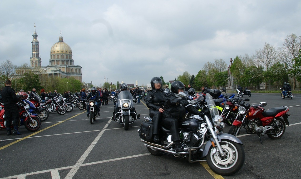 Motocykliści do Lichenia zaczęli zjeżdżać w godzinach przedpołudniowych. Gromadzili się na parkingu przy ul. Toruńskiej nieopodal bazyliki (tzw. lotnisko). Z godziny na godzinę przybywało jednośladów, wśród których można było podziwiać Hondy, Harley-Davidsony, Kawasaki czy Triumphy. Nie brakowało oldtimer’ów polskiej myśli konstruktorskiej – Junaków, WSK, SHL, Simsonów czy popularnych Komarków.