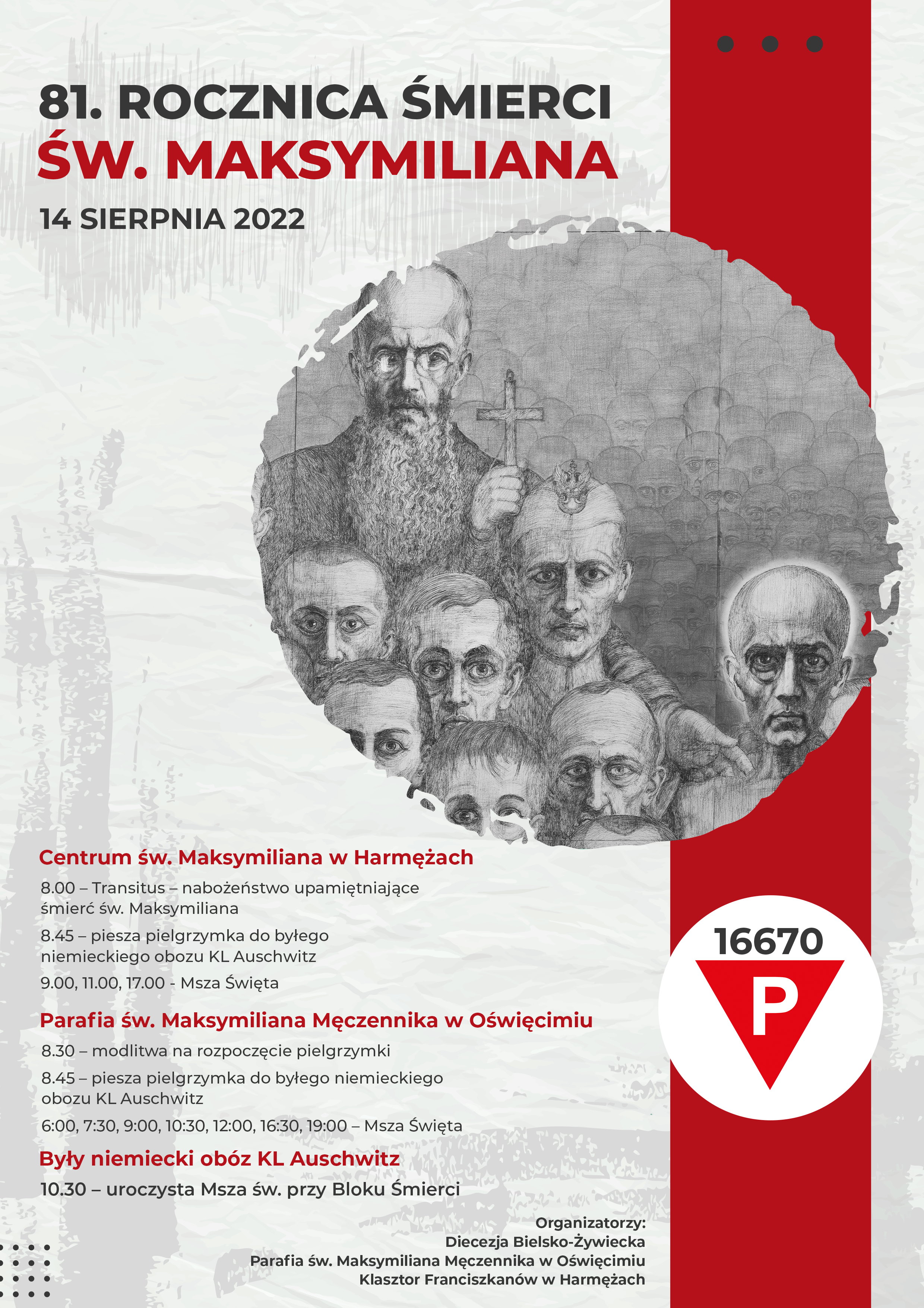 W niedzielę 14 sierpnia o godz. 8.00 w Centrum św. Maksymiliana w Harmężach (5 km od Auschwitz) franciszkanie zaplanowali Transitus – nabożeństwo upamiętniające przejście o. Kolbego z ziemi do nieba. Bezpośrednio po nim wyruszy piesza pielgrzymka z relikwiami św. Maksymiliana do byłego obozu Auschwitz.