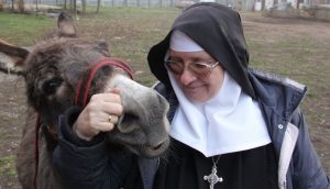 Z kuchni wychodzimy na podwórko. Przybiegają Michaś i Barcik, dwa osiołki. Młodszy zaczepia starszego, starszy tuli się czule do matki Stefanii. – Trzeba uważać, bo podskubują fraki – śmieje się mniszka, wyraźnie uszczęśliwiona. Cale towarzystwo obszczekuje Reksio. Jego siostra Pika trzyma się w bezpiecznej odległości, bo rozbrykany Barcik kopnął ją kiedyś i od tego czasu czuje przed nim respekt. Psina daje się w końcu namówić na spacer do rozległego ogrodu sióstr. – Tak odpoczywam. Zwierzaki mnie odprężają – wyznaje ksieni. Odpręża też jesienny ogród, cichy i pusty o tej porze roku.