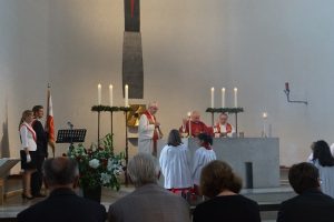 Wielu naszych rodaków przybyło na Mszę św. w strojach ludowych. Był też polski sztandar z wizerunkiem błogosławionego biskupa Michała Kozala, który jest patronem Szkoły Przedmiotów Ojczystych działającej przy naszej parafii. We Mszy św. wzięła także udział grupa polskich motocyklistów „Orzeł Biały”.