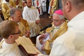 Po homilii odbyła się uroczystość święceń biskupich. Podczas Litanii do Wszystkich Świętych biskup elekt leżał krzyżem przed ołtarzem. Po litanii nastąpiła modlitwa konsekracyjna i nałożenie rąk na głowę przyszłego biskupa przez konsekrującego uroczystość, współkonsekrujących i biskupów obecnych na uroczystości. Nowy biskup został namaszczony krzyżmem świętym, otrzymał księgę Ewangelii oraz insygnia biskupie: pastorał, mitrę i pierścień. Uwieńczeniem ceremonii było gest Pocałunku Pokoju nowego biskupa ze wszystkimi biskupami.