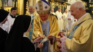 Ks. infułat Adam Kokoszka podkreśla także, że i św. Zygmunt Szczęsny Feliński, którego relikwie uroczyście do kościoła wniesiono, nie jest tutaj od dzisiaj, ale od stu lat. – Przybył tutaj wraz z siostrami Rodziny Maryi – swoimi duchowymi córkami. One przyniosły tutaj jego duchowość opierającą się o trzy fundamentalne wartości, na które także obecnie jest wielkie zapotrzebowanie, a są nimi rodzina, ojczyzna i Kościół – wylicza kapłan, życząc siostrom, by jak ich duchowy założyciel były nadal i zawsze zajęte Bogiem i pisały miłością dalsze dziesięciolecia zgromadzenia wszędzie tam, gdzie posługują.
