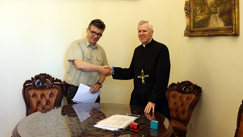 To z całą pewnością historyczny moment dla dotychczasowej współpracy między Świętokrzyskim Parkiem Narodowym a domem zakonnym na Świętym Krzyżu. Misjonarze oblaci zabiegali o ten moment od blisko 30 lat. I wreszcie się udało po trudnych negocjacjach; najpierw przez dwa lata z Ministerstwem Środowiska, Premierem i całym Rządem RP. Aż wreszcie ukazało się rozporządzenie Rady Ministrów w początkach lutego 2022 r. w sprawie uporządkowania terenu na Świętym Krzyżu. To otworzyło nam drogę do ubiegania się o te trzy działki na szczycie Łyśca (1,34 ha), na których znajduje się tzw. szpitalik i skrzydło zachodnie pobenedyktyńskiego klasztoru należące do Skarbu Państwa. Złożyliśmy wniosek do Starostwa Kieleckiego z chęcią nabycia tych działek w celu integracji i rewitalizacji całego klasztoru dla potrzeb turystów i pielgrzymów świętokrzyskiego sanktuarium. Ale jeszcze przez rok musieliśmy twardo pertraktować i negocjować z zarządem starostwa, by wreszcie 30 maja br. podpisać umowę na 50 letnie użytkowanie tych działek w trybie płatnym i bezprzetargowym – mówił o. dr Marian Puchała OMI, przełożony domu zakonnego na Świętym Krzyżu. – Dlatego możliwa jest ta dzisiejsza uroczystość i podpisanie naszej umowy. Ale zdajemy sobie sprawę, że bez zgody Świętokrzyskiego Parku Narodowego nic by się nie zadziało. Stąd nasze serdeczne podziękowanie za zrozumienie całej sytuacji, za bardzo dobrą współpracę od momentu objęcia urzędu przez dyrektora. I dziś możemy świętować i cieszyć się z rozwiązania tej trudnej sytuacji dla obu stron. Mam nadzieję na dalszą dobrą współpracę dla tego niezwykłego miejsca – dodał przełożony oblatów na Świętym Krzyżu.