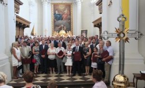 Na Mszy Świętej o godz. 11.30 zgromadzili się wszyscy, którzy od 2012 roku zakupili pamiątkowe tabliczki wspierające rekonstrukcję wieży. W sumie ponad stu ofiarodawców indywidualnych oraz firmy i samorządy odebrały z rąk superiora klasztoru o. Zygfryda Wiechy OMI pamiątkowe Certyfikaty.