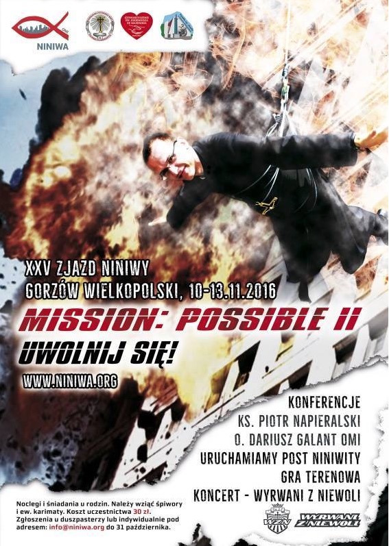 Co pół roku, w czasie długich weekendów (majowego i listopadowego), stowarzyszenie Niniwa organizuje spotkania młodzieży oblackiej. Wydarzenie odbędzie się pod hasłem: „Mission: Possible II. Uwolnij się!”
