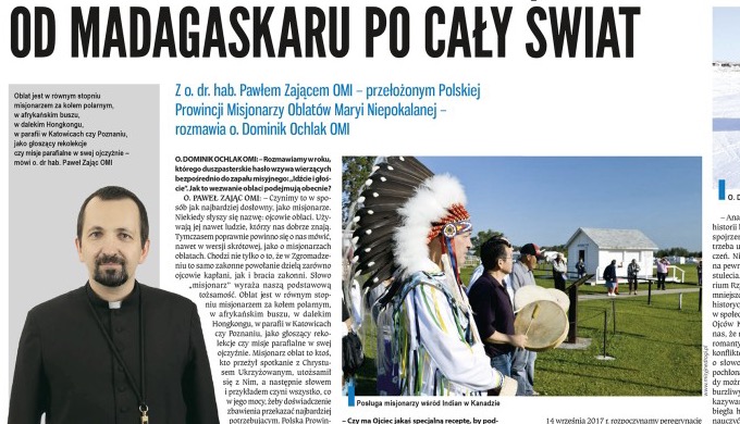 Publikujemy artykuł z tygodnika Niedziela. Rozmowę z o. Pawłem Zającem OMI przełożonym polskiej Prowincji Misjonarzy Oblatów Maryi Niepokalanej przeprowadził o. Dominik Ochlak OMI.
