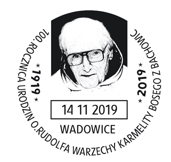 Okolicznościowy stempel z okazji stulecia urodzin kandydata na ołtarze – sługi Bożego o. Rudolfa Warzechy (1919-2019) – wydała Poczta Polska. 14 listopada 1919 r. w podwadowickiej wsi Bachowice przyszedł na świat Stanisław Warzecha, późniejszy o. Rudolfa od Przebicia Serca św. Teresy, karmelita bosy, dziś kandydat na ołtarze, charyzmatyczny spowiednik i kierownik duchowy.