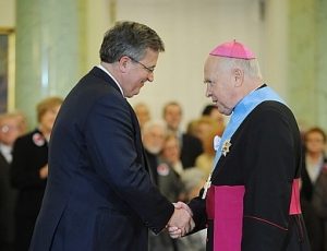 Prezydent RP Bronisław Komorowski, wręczając arcybiskupowi najwyższe odznaczenie państwowe, podkreślił, że w niełatwych czasach Kościół był w Polsce jednym z najważniejszych bastionów narodowej wolności. Wyraził przy tym nadzieję, że dobre w przeszłości relacje państwo-Kościół zostaną zachowane.