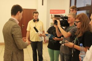 Jak co roku na PSM-ie działa także dzielnie ekipa medialna. Od poniedziałku w Ołtarzewie trwają również warsztaty medialne, podczas których młodzi mają okazję poznać tajniki pracy dziennikarza. Łącząc przyjemne z pożytecznym uczestnicy warsztatów uczą się jak pisać notatkę prasową, jak tworzyć informację dźwiękową, jak prezentować się przed kamerą, jak poprawnie i czysto mówić. A wszystko to pod czujnym okiem profesjonalistów. Warsztaty medialne prowadzą: Marek Zając- dziennikarz TVP, Paweł Gadomski- dziennikarz TVP i Wiadomości, Sylwia Sułkowska z Polskiego Radia, Marek Kreft-lektor, technik, realizator radiowy, Mateusz Lipka- dziennikarz radiowy, Maria Krystyna Kozłowska- polonistka a także Ks. Łukasz Gołaś SAC od lat związany medialnie z Pallotyńskim Spotkaniem Młodych. Obok poznawania „od kuchni” pracy dziennikarza, młodzi uczestniczą także wspólnie w Liturgii Godzin, Eucharystii oraz modlitwie przed Najświętszym Sakramentem.