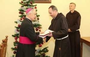„Miało to miejsce w Gnieźnie, dnia 19 grudnia Roku Pańskiego 2013, w pierwszym roku pontyfikatu Ojca Świętego Franciszka, w czwartym roku posługi na stolicy arcybiskupiej w Gnieźnie Jego Ekscelencji Arcybiskupa Józefa Kowalczyka Prymasa Polski (…). Na podstawie podpisanej umowy Braciom Mniejszym Kapucynom Prowincji Warszawskiej został powierzony pobenedyktyński klasztor w Mogilnie wraz z kościołem pw. św. Jana Apostoła oraz duszpasterska piecza nad parafią. Pierwszym proboszczem i przełożonym nowej wspólnoty został mianowany br. Krzysztof Lewandowski”.