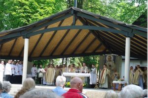 Msza święta odprawiana była przy nowo wybudowanym okazałym ołtarzu polowym. W koncelebrze uczestniczyli liczni księża Marianie z Polski, Czech, Brazylii i Kamerunu i Ukrainy.