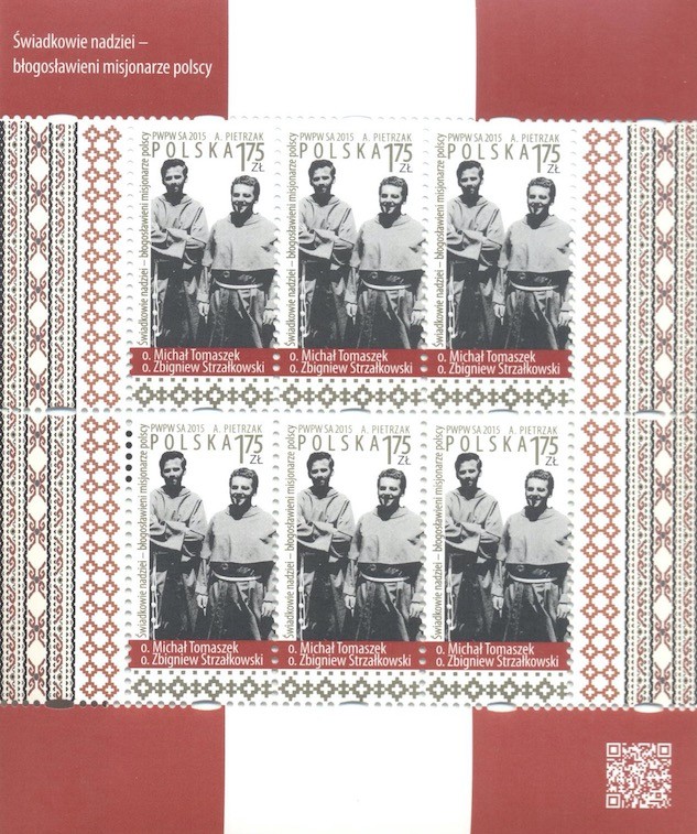 Bł. o. Michał Tomaszek i bł. o. Zbigniew Strzałkowski znaleźli się na znaczku pocztowym o wartości 1,75 zł. Nakład sięgnął 300 000 sztuk.