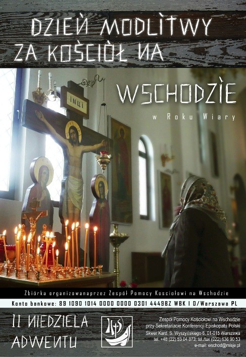 W drugą niedzielę Adwentu (9 grudnia) w Polsce i wśród Polonii już po raz trzynasty będzie obchodzony Dzień modlitwy i pomocy materialnej Kościołowi na Wschodzie. Jego celem jest wsparcie Kościoła katolickiego w krajach Europy Wschodniej, Rosji i Azji Środkowej.