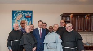 Premier uczestniczył we mszy św. w klasztornej kaplicy franciszkanów, a następnie zwiedził monumentalną wystawę prof. Mariana Kołodzieja o gehennie obozowej: harmeze.franciszkanie.pl. Po ekspozycji oprowadził go kustosz Centrum o. Piotr Cuber.