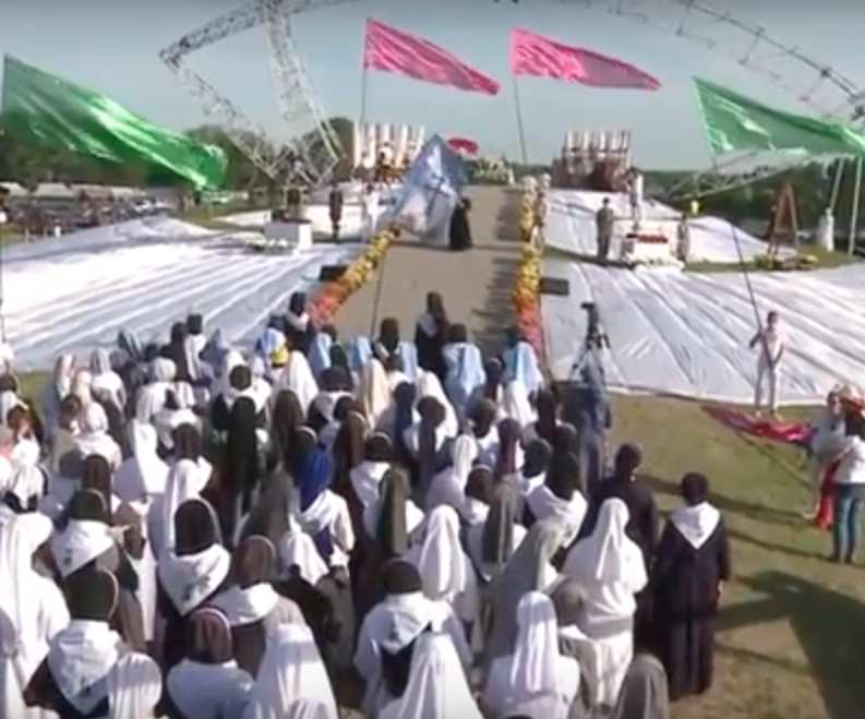 Biskup Grzegorz Ryś poprosił młodych, aby pomodlili się razem z nim za zakonnice słowami modlitwy, którą sam ułożył. Ponad 70 tys. osób wyciągnęło nad nimi swoje ręce, wołając o Ducha.