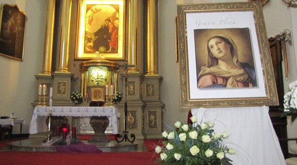 Oprócz 4 przystrojonych adwentowych świec , u Franciszkanów na Nowym Mieście ustawiono obraz Matki Bożej z napisem GRATIA PLENA – Pełna Łaski.