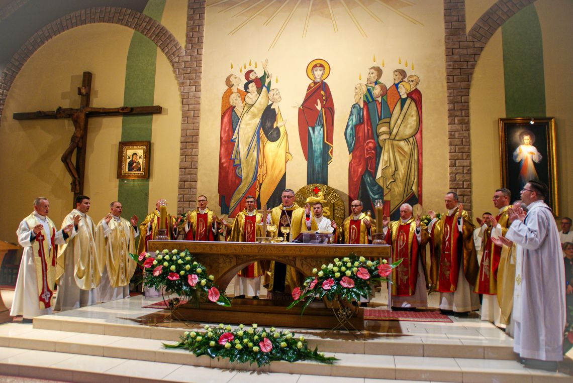 Dzień 4 czerwca 2023 dla szczecineckiej parafii pw. Ducha Świętego to data szczególna. Świętowaliśmy 100-lecie poświęcenia kościoła, tego dawnego, tzw. małego, oraz 50-lecie istnienia parafii. W tym naszym świętowaniu uczestniczyły siostry służebniczki dębickie, które posługują bądź kiedyś tu posługiwały, z matką prowincjalną Agnieszką Krauz na czele. Byli również przedstawiciele władz świeckich, służb mundurowych, dyrektorzy szkół szczecineckich oraz reprezentanci zaprzyjaźnionych zakładów pracy i firm.