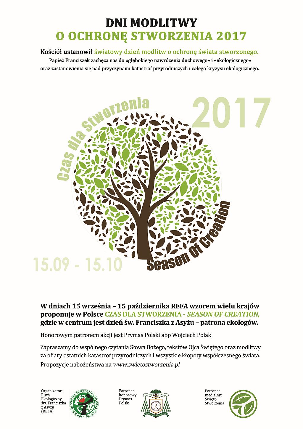 REFA na rozpoczęcie akcji zorganizowało w Krakowie koordynowany przez Kaspra Jakubowskiego rodzinny spacer do kamieniołomu Libana na eksplorację dzikiej przyrody w wielkim mieście, wspólną modlitwę i eko-piknik. Zaś w Toruniu nad brzegiem Wisły odbyła się prowadzona przez o. Stanisława Jaromiego modlitwa za doświadczonych huraganem mieszkańców pobliskich Borów Tucholskich i o pojednanie w konfliktach ekologicznych w Polsce. O. Stanisław uczestniczył też na Uniwersytecie Mikołaja Kopernika w debacie poświęconej psychologii prośrodowiskowej w ramach Zjazdu Polskiego Stowarzyszenia Psychologii Społecznej a na Międzynarodowym Kongresie Religioznawczym prezentował temat „Nowa duchowość uważna na ubogich i stworzenie według Laudato si’”.
