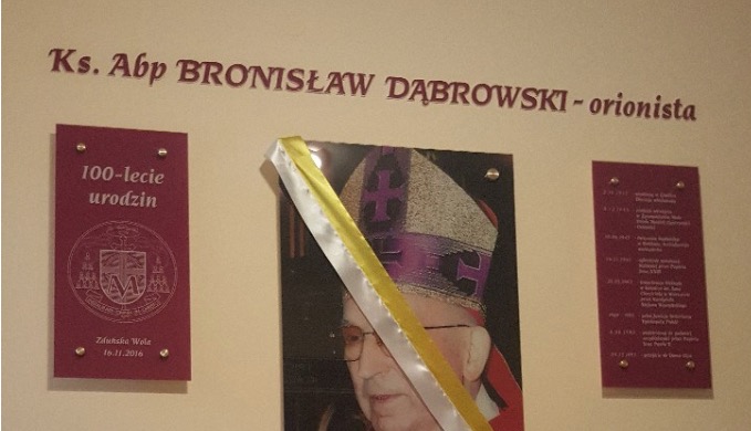 16 listopada br. w Domu Misyjnym w Zduńskiej Woli Ksiądz Biskup Stanisław Gębicki, biskup pomocniczy Diecezji Włocławskiej, dokonał uroczystego odsłonięcia tablicy upamiętniającej osobę Księdza Arcybiskupa Bronisława Dąbrowskiego FDP – długoletniego Sekretarza Konferencji Episkopatu Polski. Uroczystość odbyła się w związku z rozpoczęciem obchodów przez Zgromadzenie Księży Orionistów 100-lecia urodzin śp. ks. Arcybiskupa Bronisława Dąbrowskiego – duchowego syna św. Alojzego Orione.