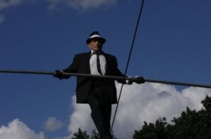 Po obiedzie wystąpił niezwyczajny gość. Na rozwieszonej metalowej konstrukcji z linami pojawił się prawdziwy akrobata i cyrkowiec – pan Stanisław Piasecki. Wystylizowany na obraz ks. Bosko z tegorocznego plakatu Campo, z lekkością spacerował po linie ustawionej parę metrów nad ziemią. Występ był nie tylko popisem linoskoczka, ale również świadectwem człowieka, który wykonując tak bajeczny zawód, jest jednocześnie głęboko wierzącym chrześcijaninem.
